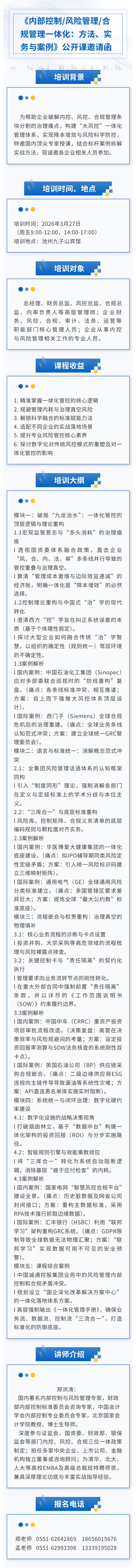 《内部控制/风险管理/合规管理一体化:方法、实务与案例》公开课火热报名中